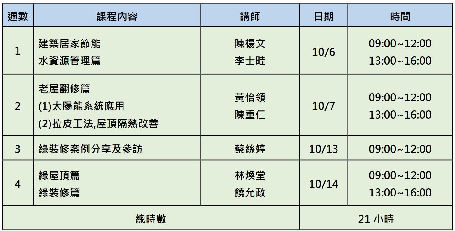 2018綠領建築師培訓工作坊「居家綠裝修」主題系列 ~課程大綱