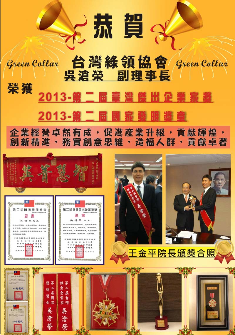 喜訊!!本會副理事長吳滄榮先生獲「臺灣傑出企業家獎」!
