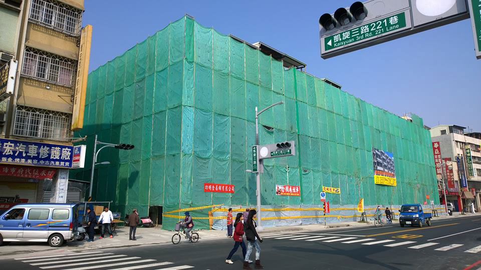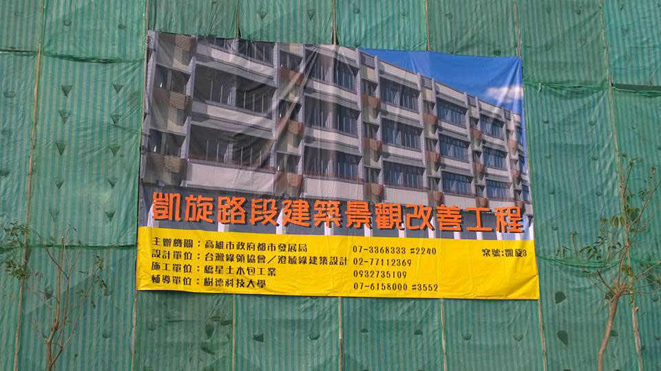 台灣綠領協會在高雄氣爆區第一幢綠色拉皮