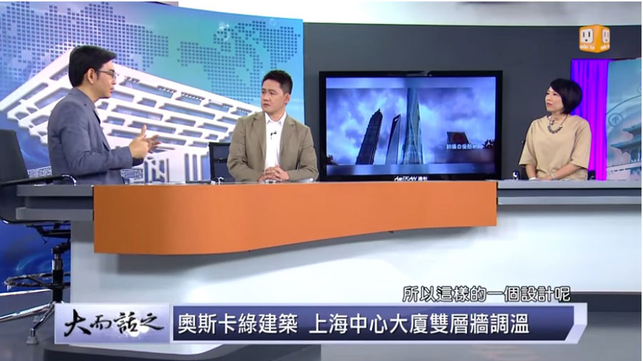 以上海中心大廈來說,首先看它的能源,它本身節能比一般的辦公室還節能65%,就是降低65%,這是很難得的事情,尤其是在摩天大樓。上海中心大廈透過像一個雙層牆的構造,透過雙層牆中間的空間來做緩衝。