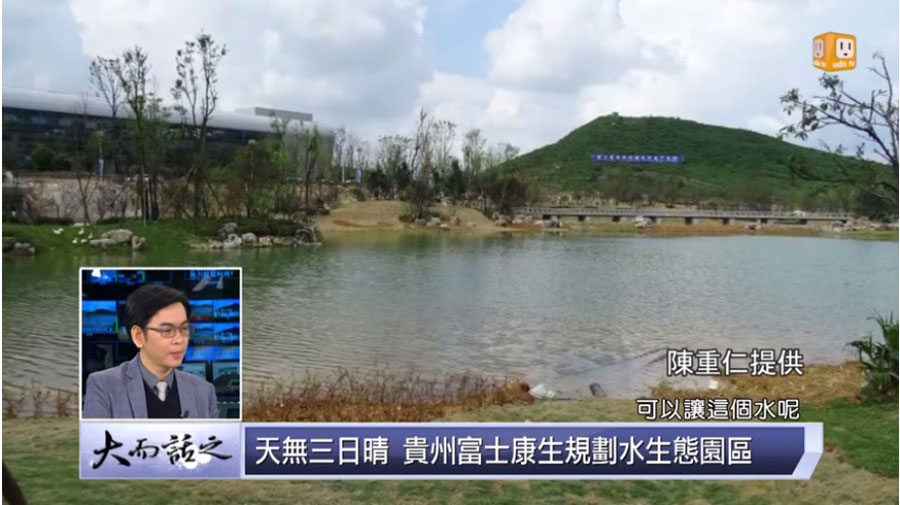 整個園區裡面有做一個很大的生態池,可以讓水直接到生態池淨化;雨水也可以留在生態池裡面不要出去,這是一個比較生態方法。廢水、汙水沒有排放,自己淨化,水再利用,拿來澆花、沖馬桶。