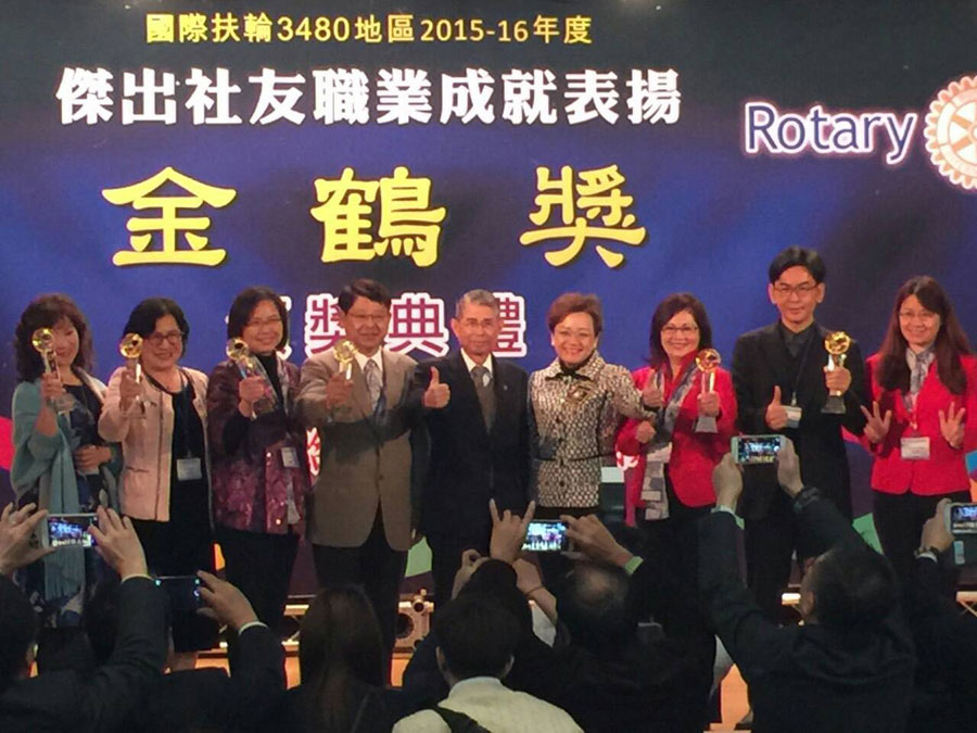 國際扶輪3480地區2015-16年度「金鶴獎-傑出社友職業成就表揚活動」,今天上午在圓山飯店舉行頒奬典禮,台灣綠領協會理事長陳重仁先生長期推動、深耕綠色產業被獲提名,獲頒金鶴獎殊榮。