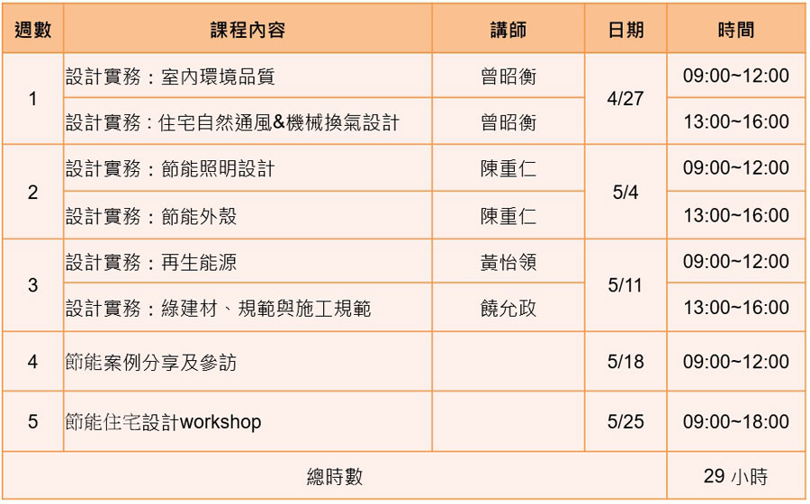 2019 綠領建築師培訓工作坊「節能健康住宅‧設計師班」~ 課程大綱