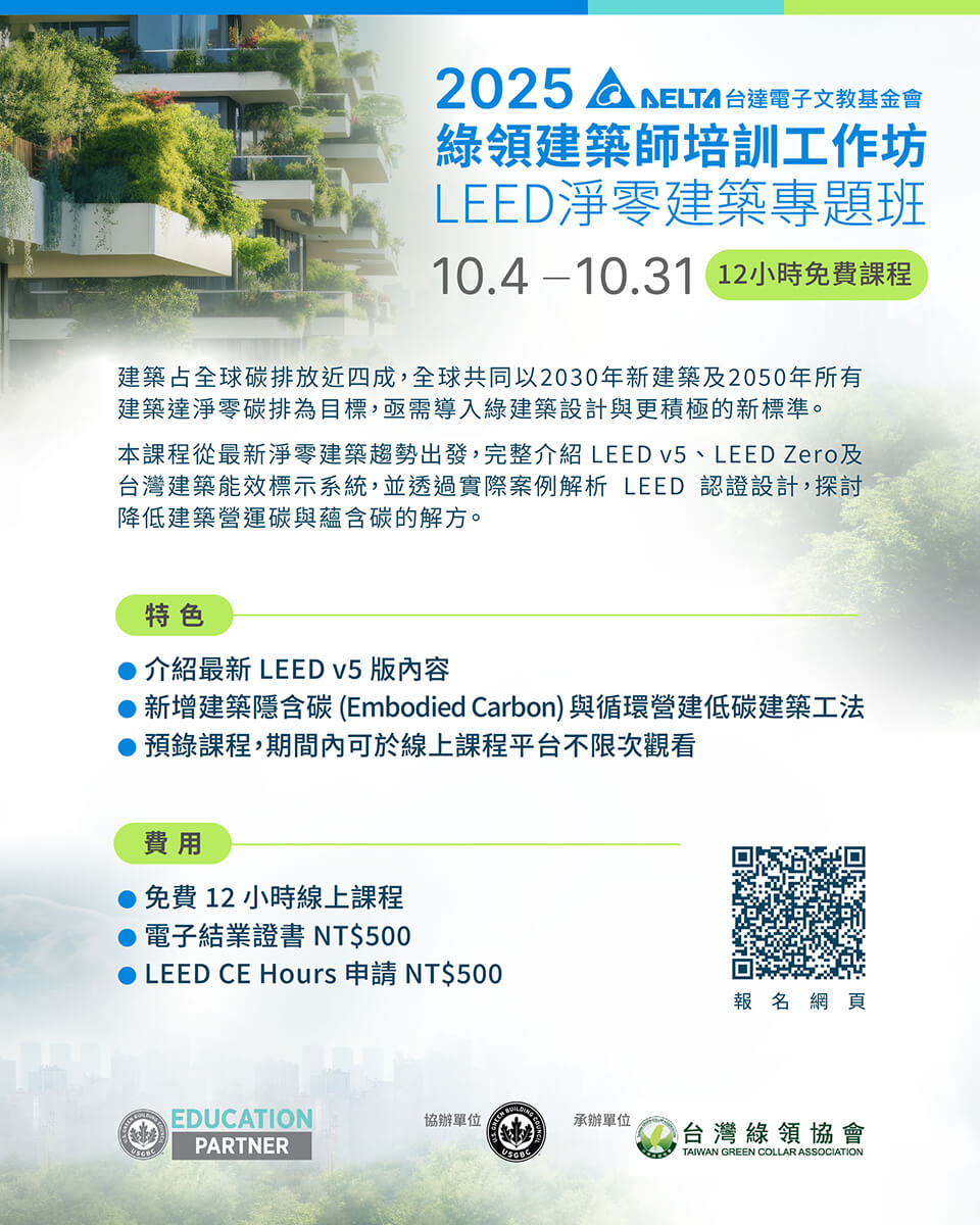 2025綠領建築師培訓工作坊-LEED淨零建築專題班