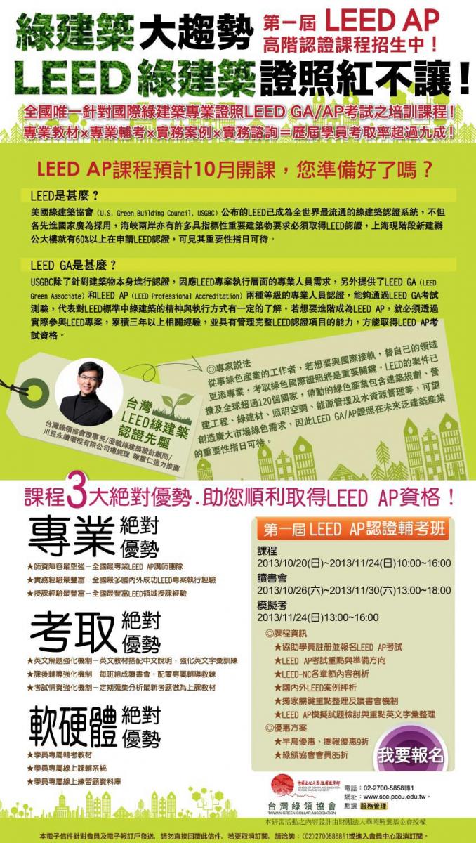 號外!! 第一屆【LEED AP高階美國綠建築證照】招生啦~
