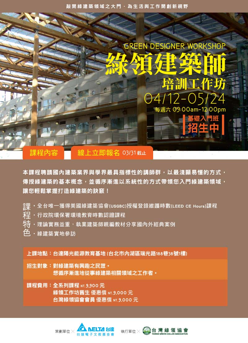 一年一次的「綠領建築師培訓工作坊-基礎入門班」,開始報名囉!