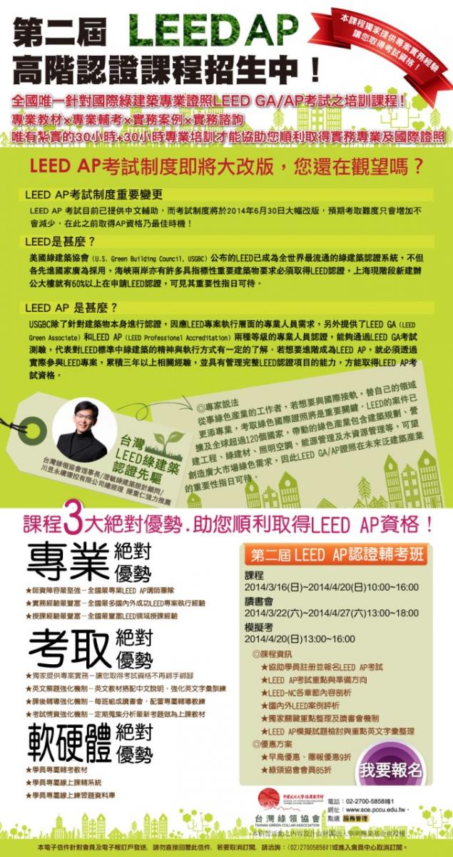 第二屆 LEED AP班招生中!~ 改版前最後一班 ~
