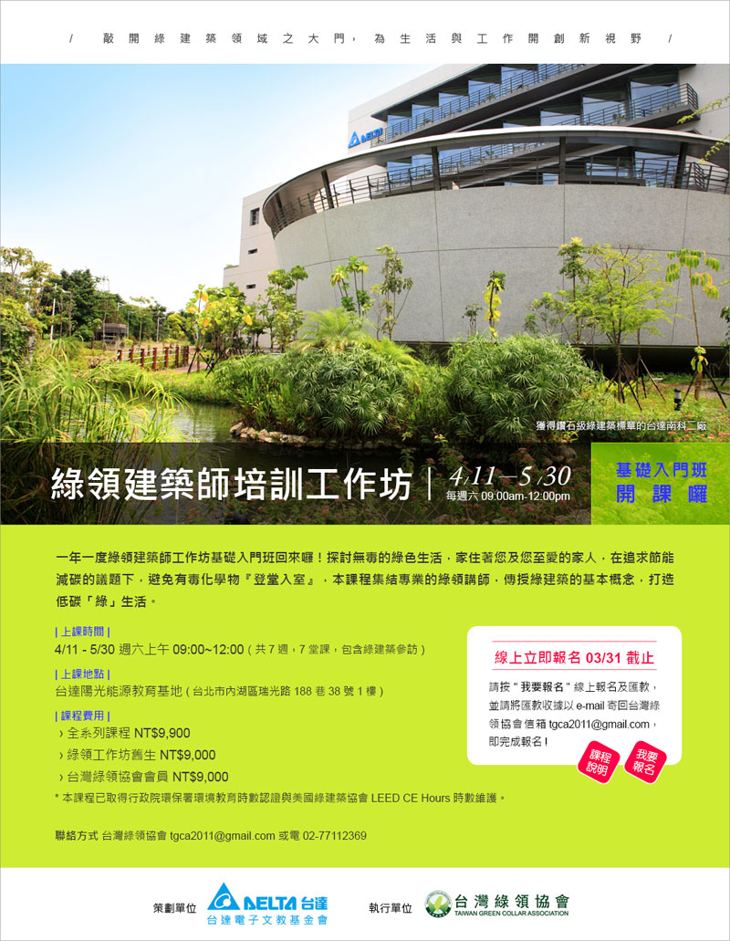 綠領工作坊「第四屆基礎入門班開始報名囉」