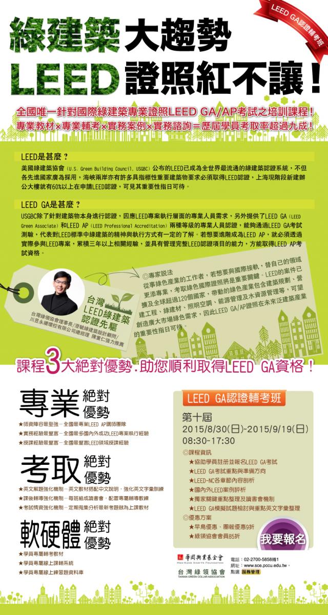 2015年 LEED GA V4版第二屆 開始報名囉!敬請把握