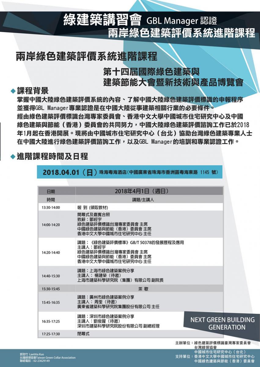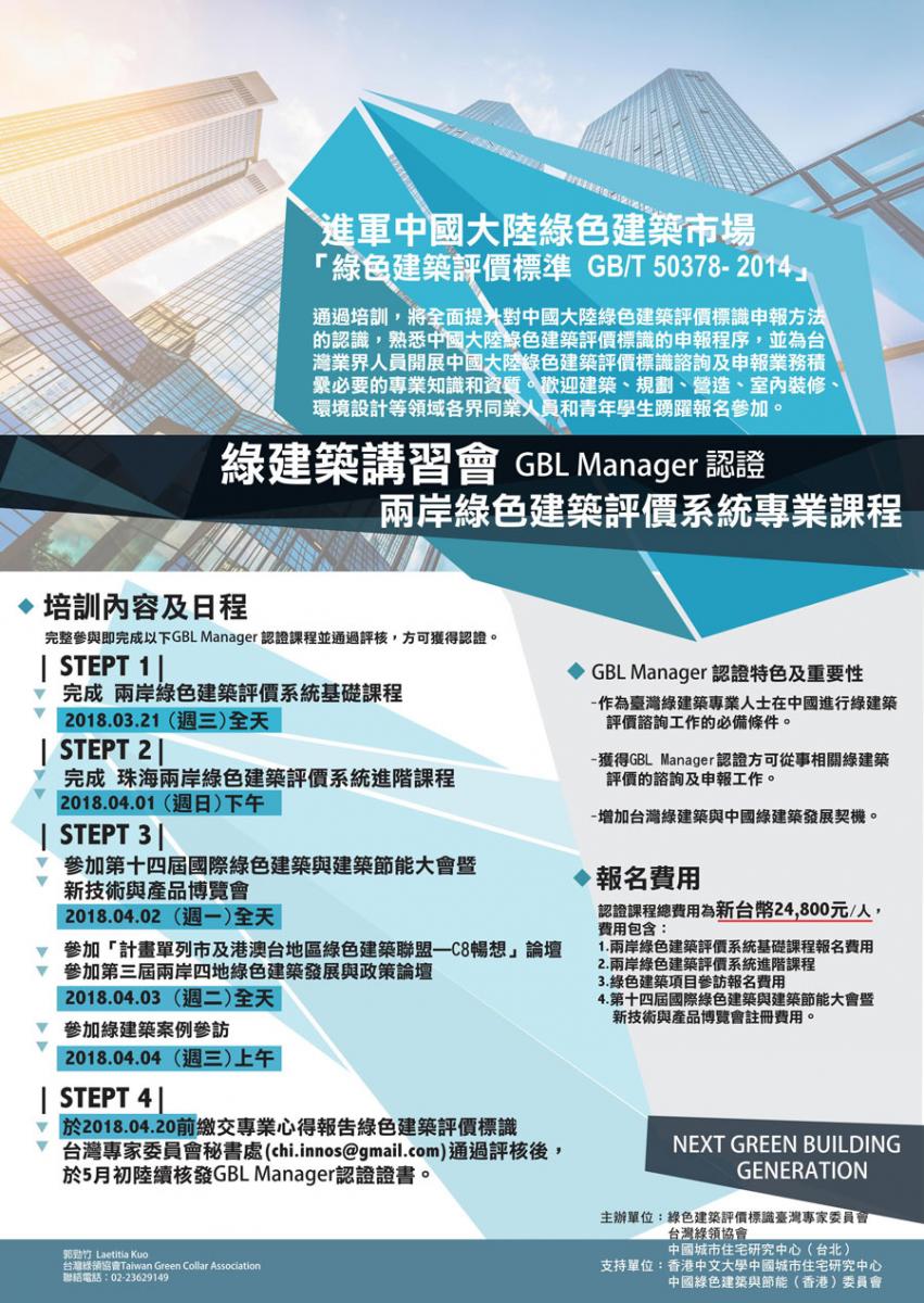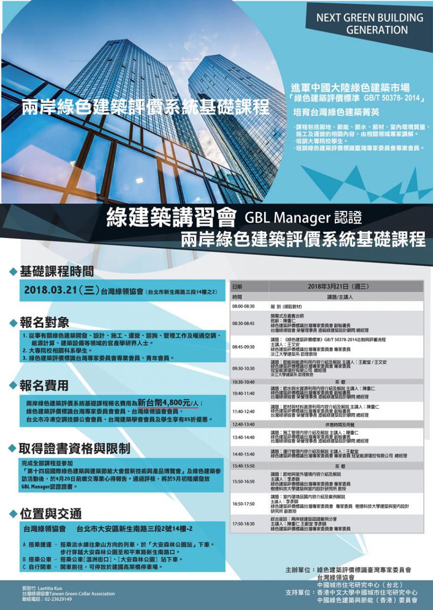 綠建築講習會:兩岸綠色建築評價系統基礎課程及GBL Manager專業認證