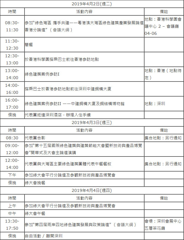 - 參訪香港和深圳優秀綠色建築案例,推動海峽兩岸和粵港澳大灣區各界人士進一步探討綠色建築在熱帶與亞熱帶區域的挑戰與未來趨勢。