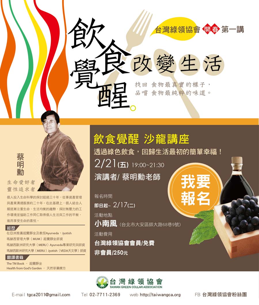 2014年開春第一講 ~「飲食覺醒 改變生活」綠領沙龍講座!