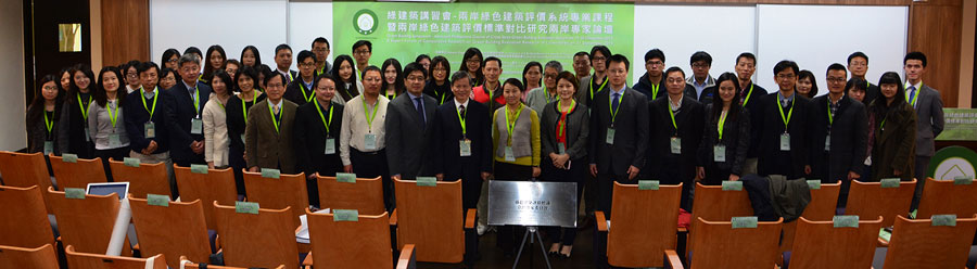 「兩岸綠色建築評價系統專業課程」由綠色建築評價標識台灣專家委員會副秘書長、台灣綠領協會理事長陳重仁先生擔任主持,邀請首度來台的中國大陸住房和城鄉建設部科技與產業化發展中心姜中橋副主任、台灣內政部建築研究所何明錦所長與綠色建築評價標識台灣專家委員會主席鄒經宇教授等嘉賓為講習會致詞。台北科技大學設計學院長彭光輝教授及中華民國建築經營協會施俊偉理事長也到場參加。