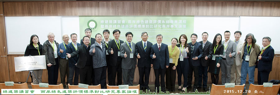 中國城市住宅研究中心(台北)於2015年7月在大陸青島成功召開「兩岸綠色建築評價標準對比研究首屆專家論壇」,雙方對綠建築規範認知對比,達到初步理解,這次首度在台北舉辦專家論壇,主要建立對標體系與架構,並由台灣專家學者依照大陸「綠色建築評價標準」對台灣已獲得EEWH綠建築認證的案例進行試評。