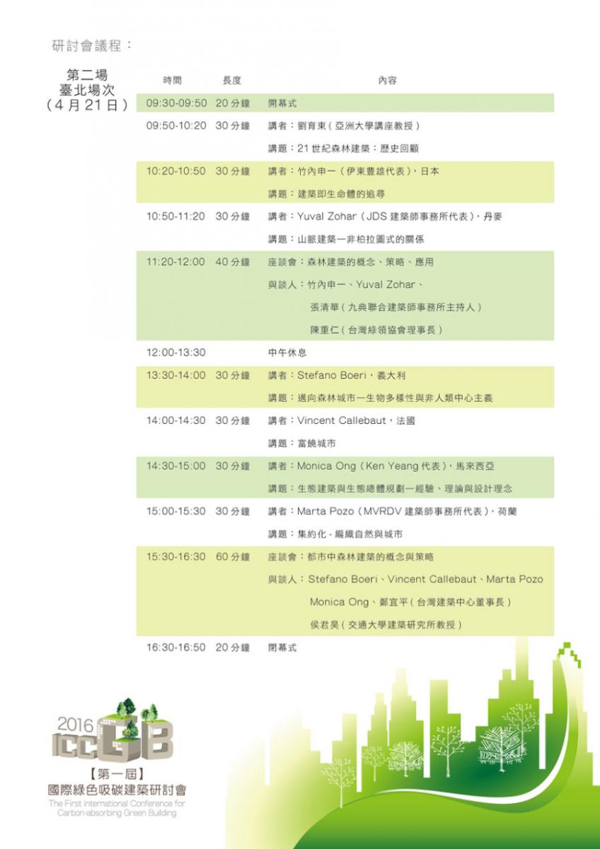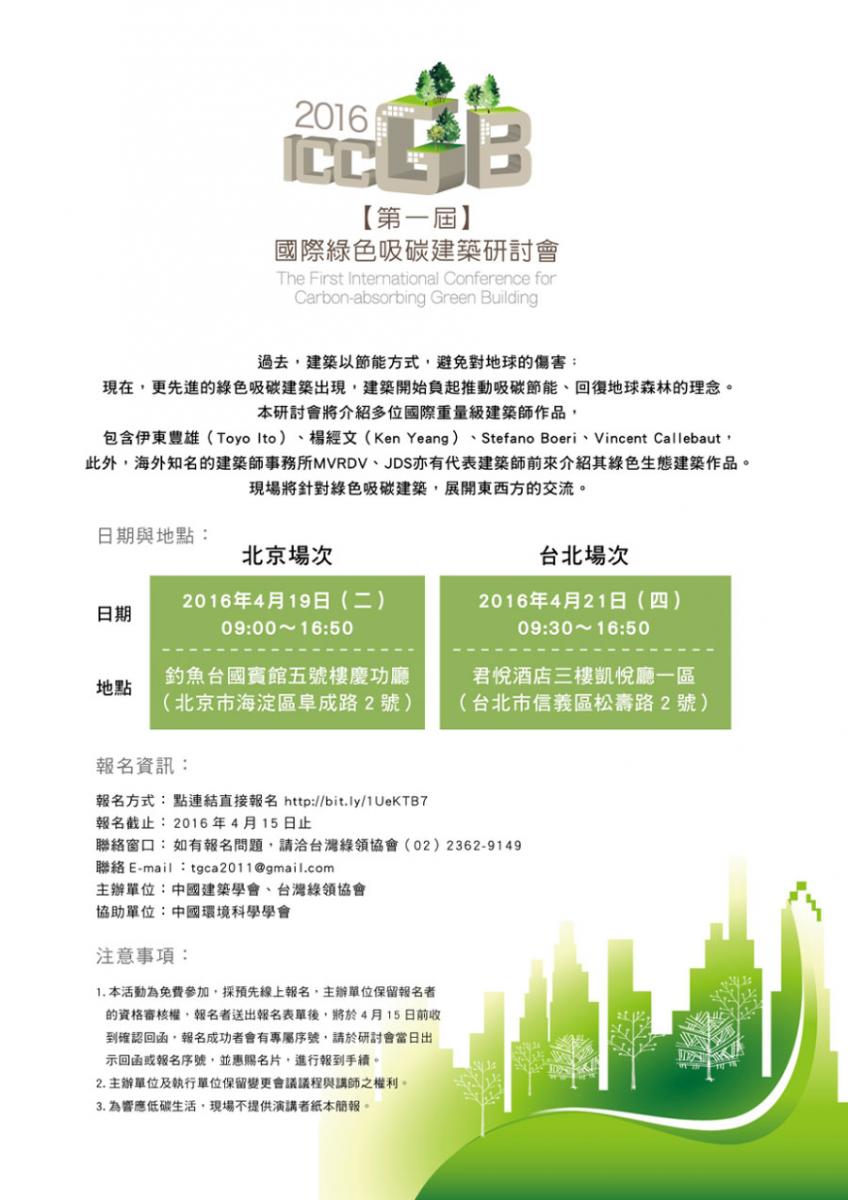 【報名截止】第一屆國際綠色吸碳建築研討會