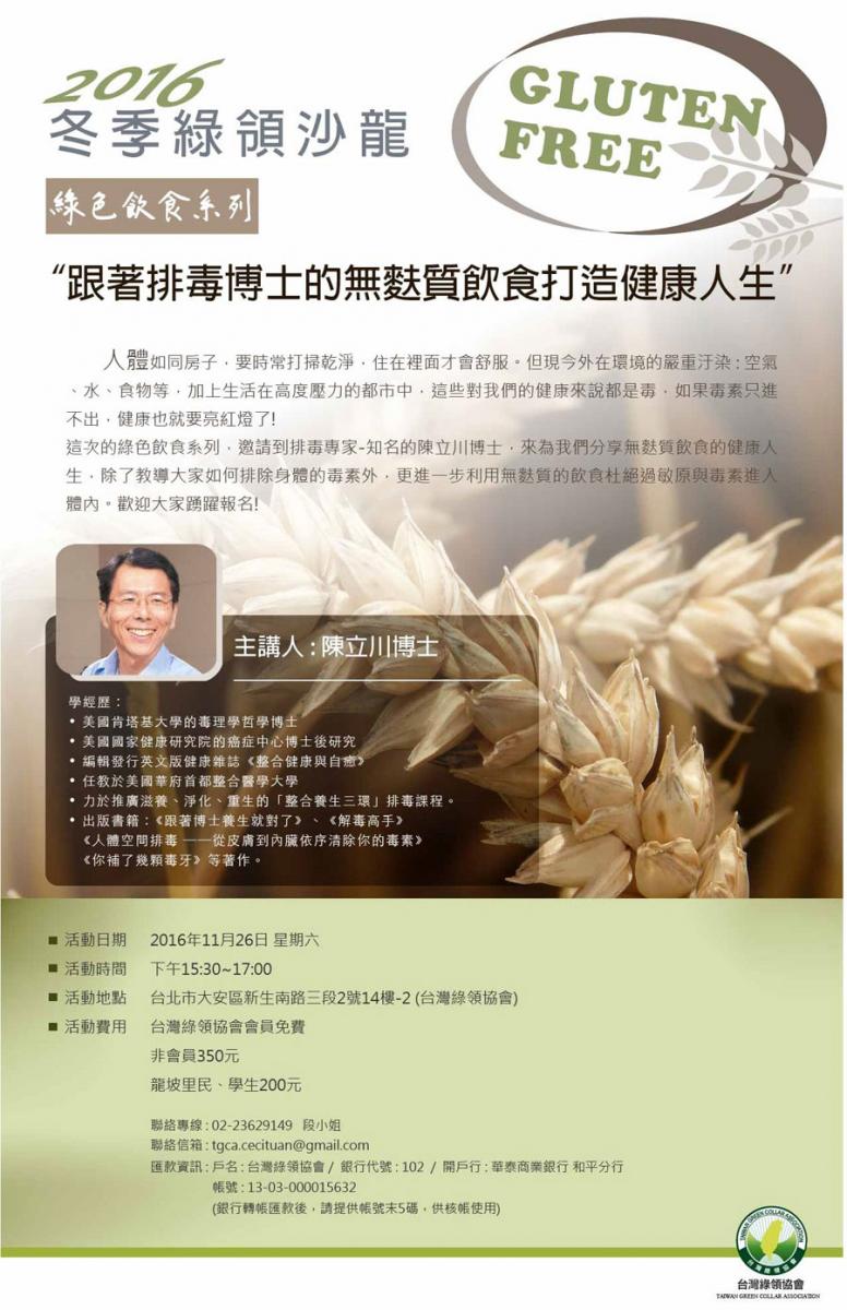 冬季綠領沙龍-綠色飲食系列-跟著排毒博士的無麩質飲食打造健康人生