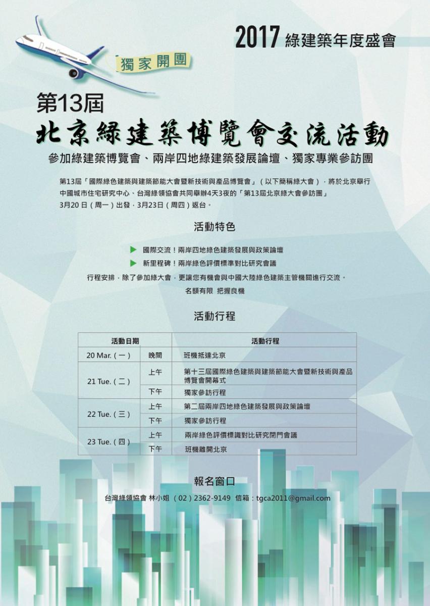 【2017綠建築年度盛會】北京綠建築博覽會交流活動,獨家開團!